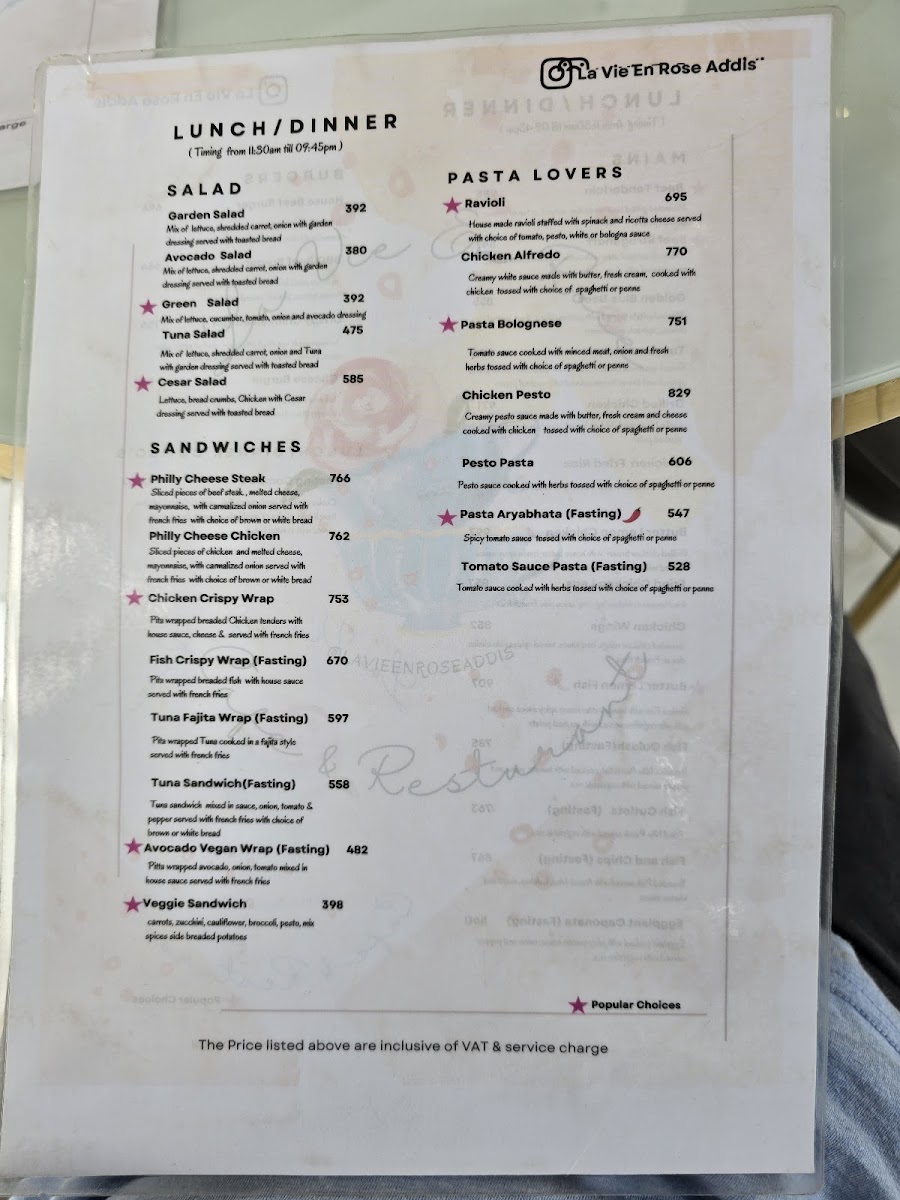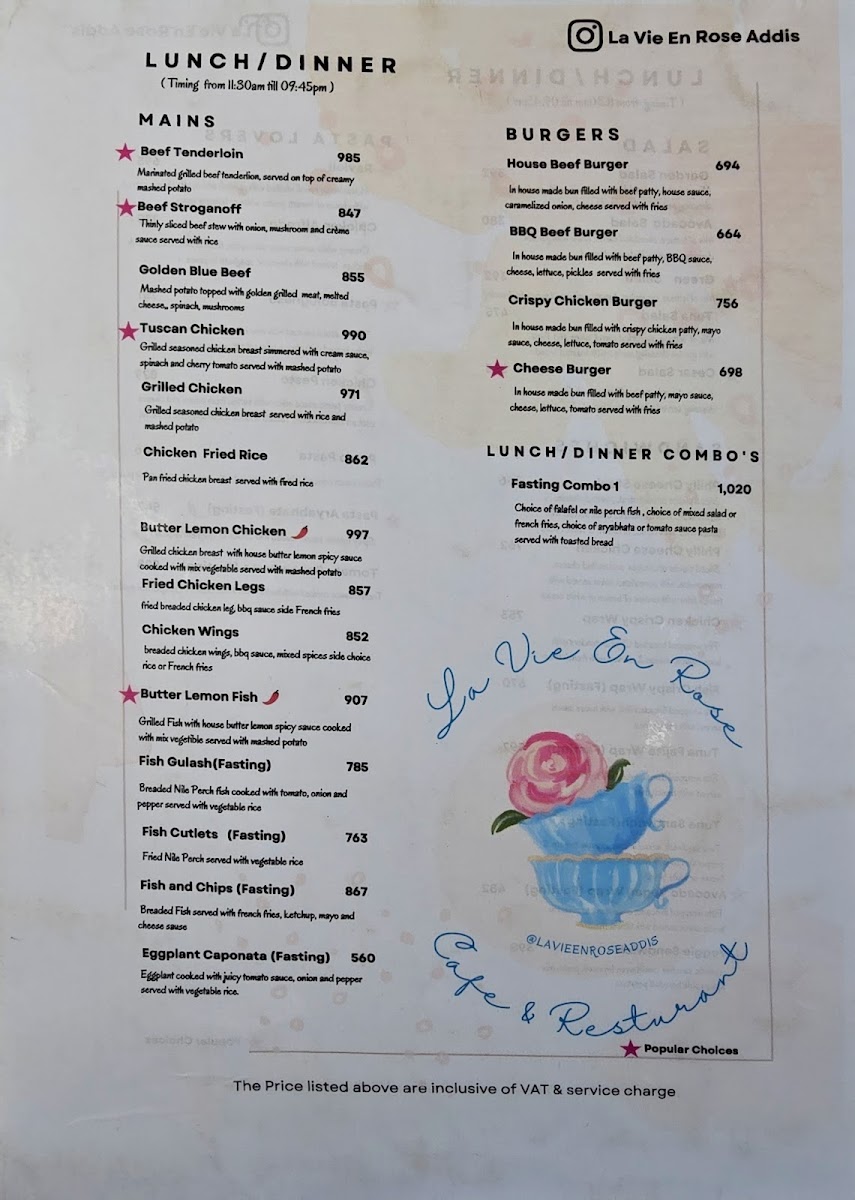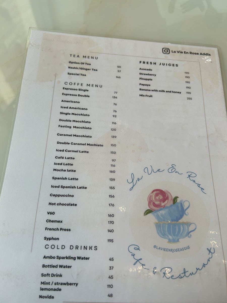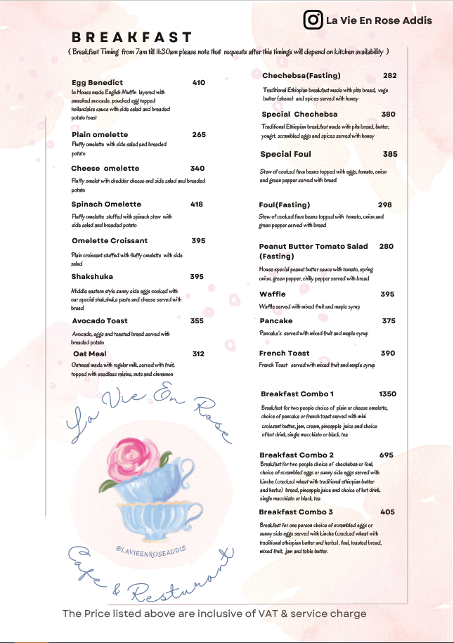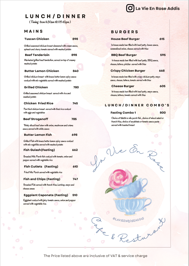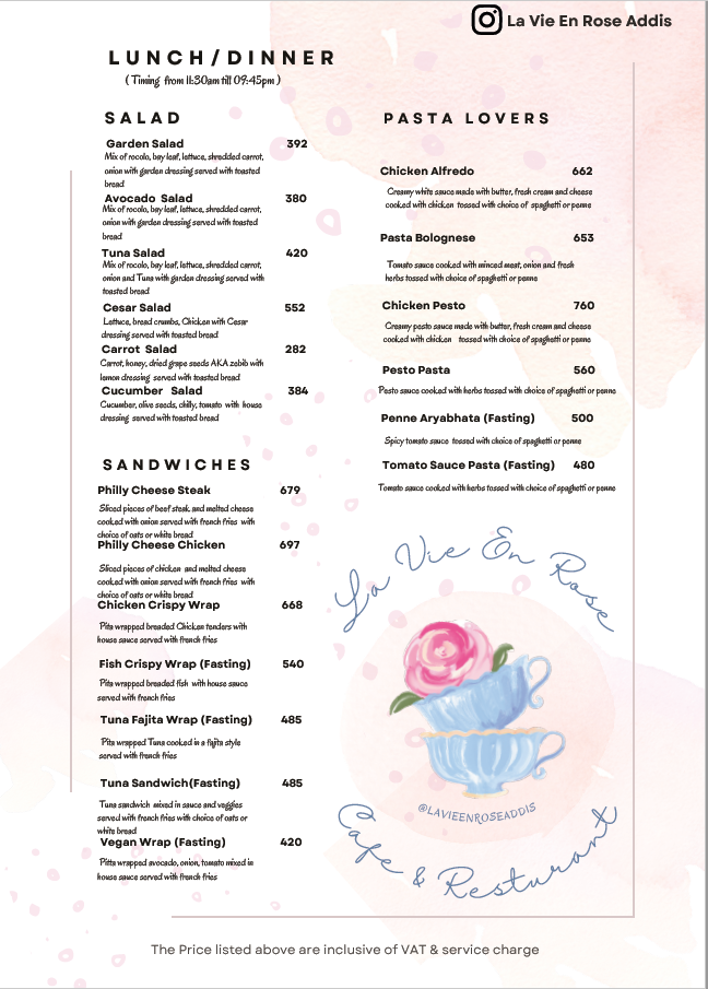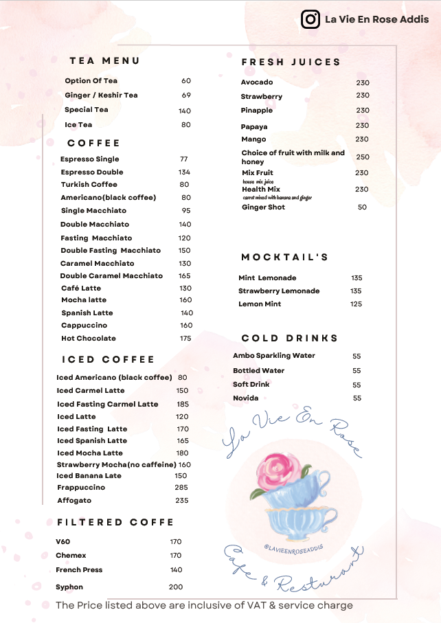 La Vie En Rose Addis Bole Rawanda Menu